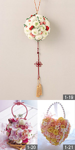 持ち手がついたバッグ型や球状のボール型のブーケは、ユニークなかわいさが注目を集めそう。リース型のブーケは、永遠の愛を意味する縁起もの。どれも丸みを帯びたデザインなので、スレンダーなドレスには不向きかも。